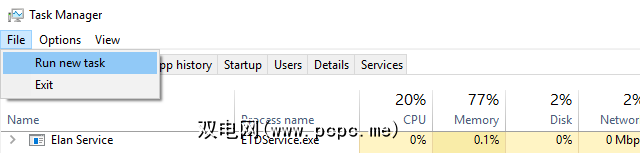 在任务管理器中,您可以转到“文件"菜单,然后选择运行新任务以启动“运行"提示。大多数人都知道这一点,因为这是在Windows早期版本中手动重新启动冻结的Windows资源管理器的最佳方法。
