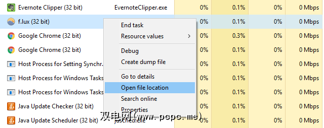 只需右键单击任何进程,然后选择打开文件位置。这将直接带您到包含进程的可执行文件的文件夹(即,如果将其打开,则显示在“进程名称"列下的同一文件)。超级快,超级方便。