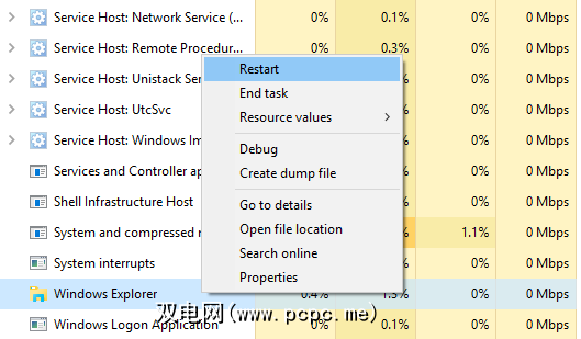 这实际上是一个足够普遍的问题,任务管理器现在对Windows资源管理器进程采取了特殊的操作:重新启动。这将为您杀死任务并自动重新启动它。 (它使您不必自己重新启动。)Windows冻结时,总是值得一试,而其他应用程序却没有。