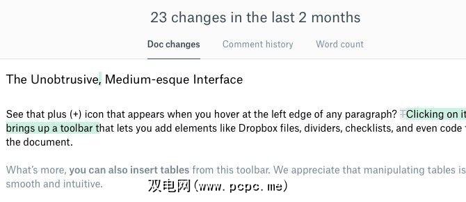 任何不占用您Dropbox存储空间的东西都很好,对吧?纸质文档不会计入存储限制,因此您可以创建任意数量。另外,无论您采用哪种Dropbox计划,文档的历史记录都可以追溯到首次创建文档的时候。