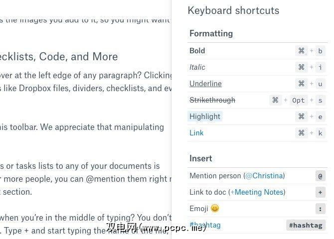 纸张具有相当数量的键盘快捷键。您会在任何文档右下角?图标后面的键盘快捷键部分中找到它们。