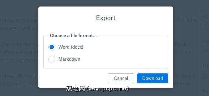 DOCX和MD是唯一可用于导出文档的文件格式。尚不清楚其他重要格式如PDF和HTML是否会在Paper的最终版本中出现。