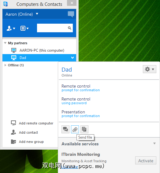 第三个选项是转到“计算机和联系人"窗口,右键单击要发送文件的用户/计算机,然后单击“回形针"
