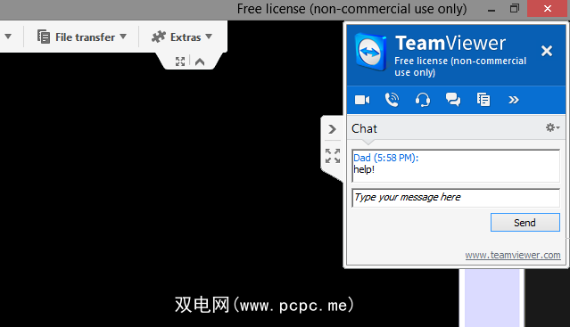 没有理由下载第三方聊天客户端或致电此人– TeamViewer的集成聊天功能可解决麻烦。这将显示在屏幕的右上方,默认情况下可能会最小化。只需单击小“箭头",聊天窗口就会展开。从这里您可以立即使用文本聊天或音频/视频呼叫此人。