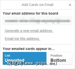 您将看到一个电子邮件地址。将任何电子邮件发送到该地址,并以卡标题作为电子邮件主题,并以卡描述作为电子邮件正文。在设置中,您可以指定创建这些卡时要使用的列表。
