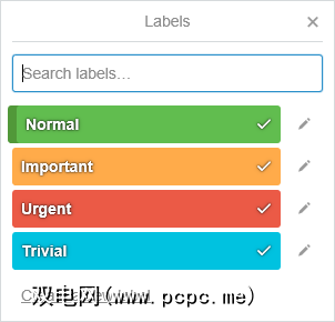 或者您可以使用标签来标记每个任务的优先级。为“紧急",“重要",“正常"和“临时"创建标签,以显示需要最紧急注意的任务。我发现此方法比基于进度的标签更实用,但对于每个标签都是自己的。