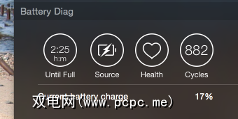 也许您不需要查看每个系统的统计信息:也许您只是对电池和内存感兴趣。如果是您,那么几个免费工具可以为您提供小部件。例如,电池诊断(Battery Diag)为您提供了电池的以下概览: