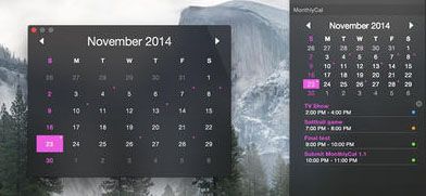 Yosemite带有“日历"小部件,但它仅显示当天的约会-如果您想查看16日是星期几,则无用。 MonthlyCal($ 1)为您提供当月的完整视图,并让您浏览日历约会。