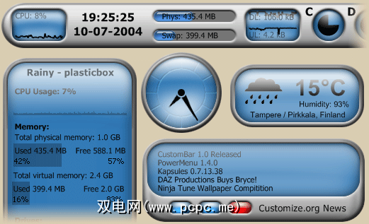 Rainmeter与Samurize极为相似。它包括自定义功能和可供选择的“皮肤"社区。社区可能不像Samurize那样大,但是它确实提供了一些非常棒的外观,并且可以是不错的替代品,也可以与Samurize结合使用。