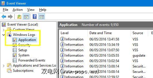 您可以通过深入研究事件查看器来找到一些与系统还原过程有关的错误的线索。搜索实用程序并打开它以开始使用-您需要展开 Windows日志文件夹,然后单击应用程序。