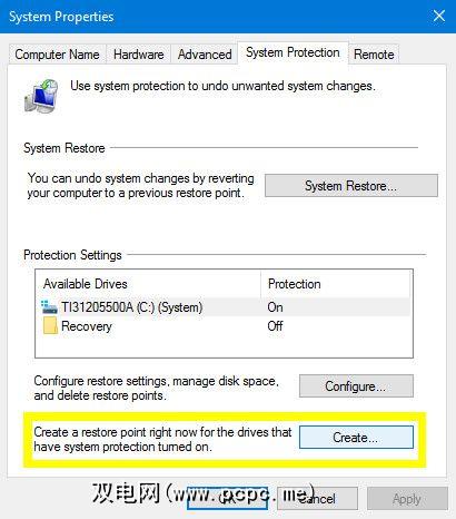在系统还原异常期间,您的第一个呼叫端口应该是手动创建系统还原点。虽然这不可能完全解决问题,但您很可能会看到一条错误消息,可以更轻松地诊断出问题所在。