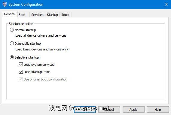 您可以选中和取消选中加载系统服务和加载启动项框,以自定义计算机在启动时的行为。有关使用“选择性启动"进行故障排除的详细信息,请参阅Microsoft的流程指南。