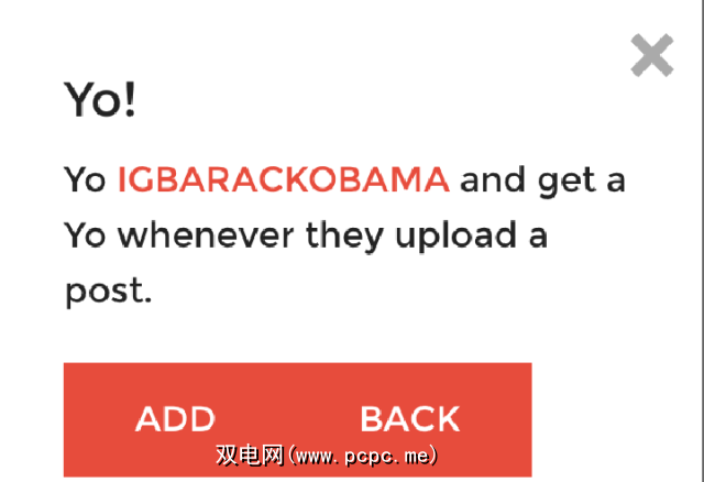 使用Yo商店中的Instagram应用程序,每当您最喜欢的Instagram使用者上传新照片时,您都可以收到哟。 Instagram并未立即提供此功能,因此这是完成它的一种很酷的方法。