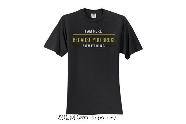 技术支持人员的制服是T恤,上面刻有讽刺的口号。从“您已关闭电源并再次打开电源"到“死亡蓝屏"再到“我只是在这里因为您弄坏了东西",每个人都可以在这里找到东西。