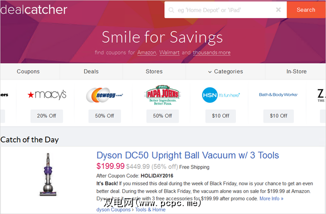 DealCatcher是使用其优惠券和交易获得最佳讨价还价的绝妙资源。您可以搜索产品或浏览优惠券,交易,商店,店内优惠以及各种类别。 商店部分是DealCatcher最好的东西之一。如果您有喜欢的商店,例如The Home Depot,Macy's,Best Buy或Target,则可以快速查看该零售商的所有可用交易。