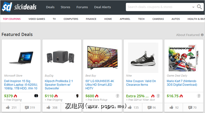 Slickdeals是最著名的折扣网站之一,包括从小工具到服装的所有内容。界面简洁直观,讨价还价变得轻而易举。按交易,类别或商店浏览,并确保直接在主页上查看特色交易。