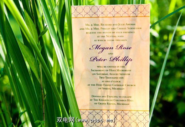 木卡可以让您用实木制作结婚请柬,菜单,甚至信封。它为您的婚礼增添了自然感,非常适合将您的邀请与众不同。 (他们还制作书签,我实际上是把它们当作有趣的婚礼礼物。)