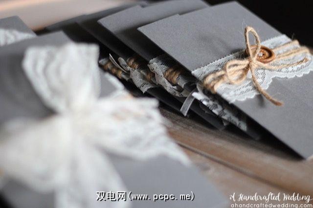 粗麻布,梅森罐子和其他“破旧别致"装饰很受欢迎现在。要在您的婚礼请柬中添加一些这种风格,请考虑添加装饰。