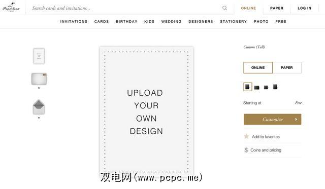 PaperlessPost可让您自由支配从头开始设计卡。学习一些Photoshop的基本技能,然后设计卡片并在完成后上传文件。他们会为您打印,如果您愿意,他们甚至会将其发送给您的客人,这样您就不必处理麻烦了。