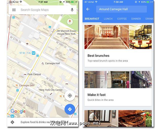 探索功能可快速节省时间,在Google地图上查找您当前位置附近的名胜古迹。地图。打开Google地图应用,然后点击地图底部的“ 探索周围"。您还可以点击搜索栏,然后选择一种地点。建议范围从吃饭的地方,景点看的地方到要做的事情。
