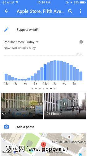 您可以检查许多地点的营业时间和营业时间。滑动方便的条形图,查看一周中的热门时间。根据您的喜好,您可以使用此数据来避开人群(也许是欢乐时光)或在该地方非常热闹时进入。下次购物时,请尝试此操作。