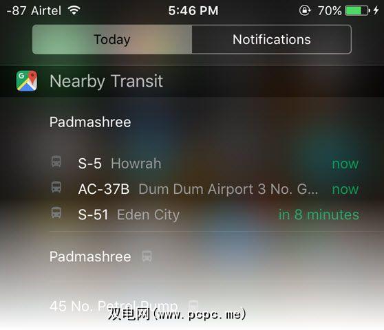 要使用该小部件,请从屏幕顶部向下滑动,然后转到通知区域中的今天。向下滚动并点击编辑。在“ 不包括"下,选择附近公交。