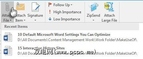 在附件工作时,电子邮件工作流程会加速。 Microsoft Outlook 2016使得从菜单中附加最近打开的文件变得更加容易。