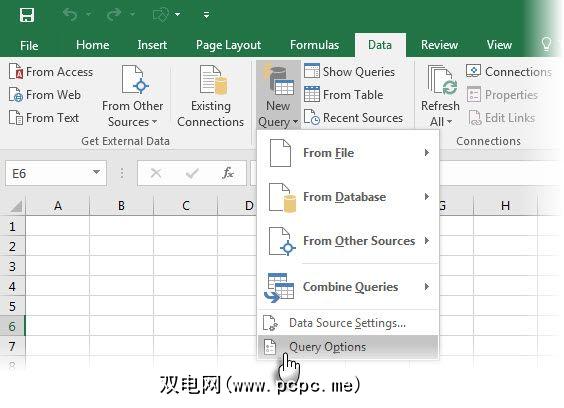 Power Query是一种商业智能工具,可以在Microsoft Excel 2013和2010。它也仅适用于Microsoft Excel Professional Plus中的PowerPivot。随着Query在Microsoft Excel 2016中的到来,两个障碍已被消除。通过功能区>数据>获取并转换>新建查询来访问查询。