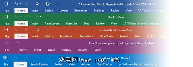 实际上,Microsoft Office 2016引入了 Colorful (色彩缤纷),这是默认主题,每个应用程序都有不同的颜色。 Microsoft Word为深蓝色,Excel为绿色,PowerPoint为橙色,Outlook为浅蓝色,OneNote为紫色。