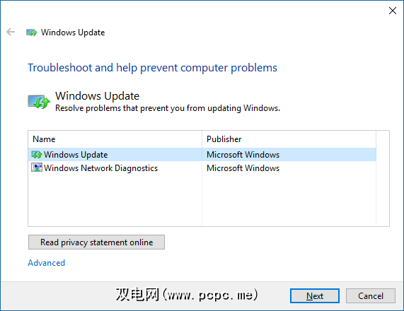 Windows Update诊断工具提供了解决Windows Update问题的最快方法。只需下载工具并运行即可。