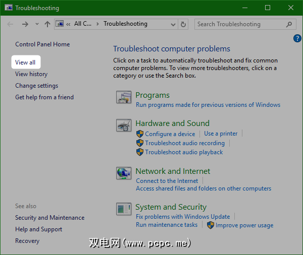 与本文前面提到的疑难解答程序一样,可以在控制面板中找到它。但是,这一次您需要进行更深入的研究。