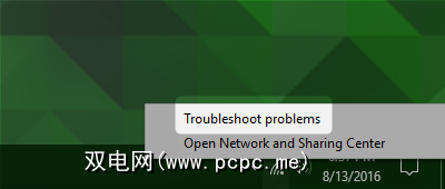 要启动自动疑难解答程序,请在任务栏右下角找到 Internet状态图标。该图标要么显示为Wi-Fi符号(如下所示),要么显示为左侧带有LAN电缆的监视器,具体取决于您连接到Internet的方式。右键点击图标并选择问题排查。该过程只需要单击几个菜单即可。