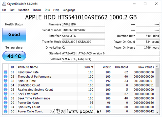 好吧,这就是CrystalDiskInfo发挥作用的地方。