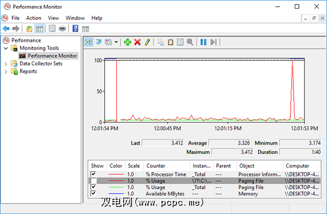 默认情况下,监视器仅显示“%Processor Time",它显示在任何给定时间使用了多少CPU,但是您可以添加更多计数器,例如磁盘使用率,能耗,页面文件大小,搜索索引大小等等。