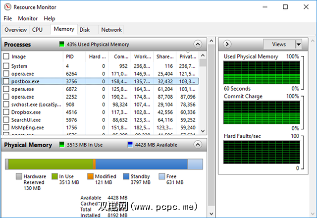 资源监视器是一种查看实际内容的高级方法有关系统的时间数据,通常与性能监视器结合使用。但是,我主要将其用于查看进程详细信息和内存使用情况。确实,这是解决RAM问题最简单的方法之一。