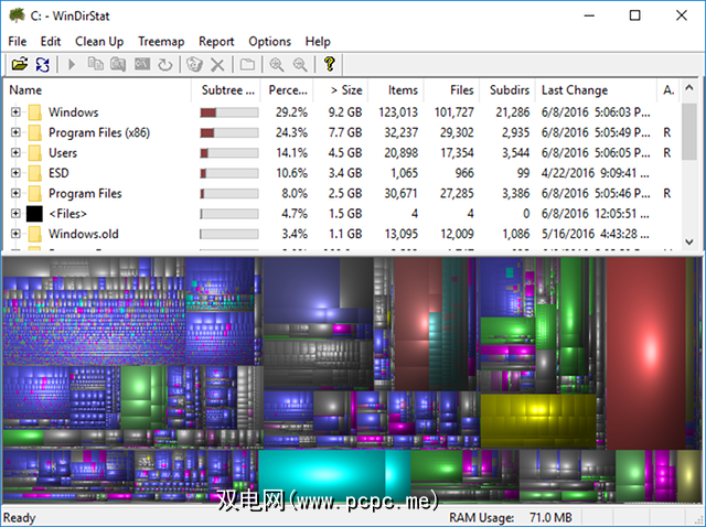WinDirStat是必不可少的应用程序。我已经定期使用它很多年了,它从未让我感到失望。