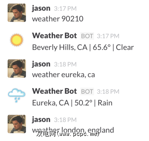 简洁明了。 Weather bot会告诉您所告诉的任何位置的天气。不过,作为在线自由职业者,我们不会外出太多,因此该机器人只会用于那些“出门在外"并体验到“新鲜空气"(无论如何)的怪异神话人物。