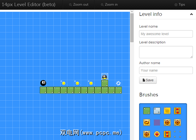 这是一个令人惊讶的具体问题,但是答案是肯定的! 14px拥有自己的在线关卡编辑器,您可以在其中访问游戏中使用的所有部件,并且仅受自己的想象力限制。