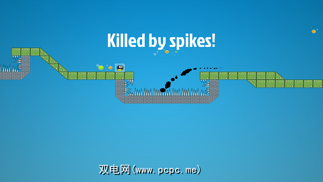在跌倒之前,您会获得两次跳跃不情愿地降落,这让您在转弯时躲避“飞行尖刺的东西"(这是实际名称)时在天空中相当尴尬。您还可以无限跳出任何物理对象(只要该物理对象不是试图杀死您的尖刻东西),就可以让您越过水平面爬上墙壁或挂在天花板上。