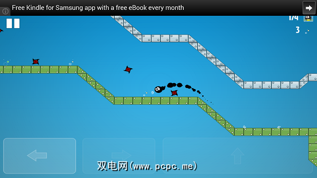 容易!屏幕底部排列着三个按钮:向左移动,向右移动和跳转。没有攻击,没有武器,没有防御-只是移动和跳跃。