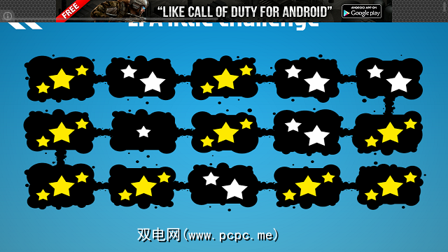 在横幅广告开始阻止后退按钮之前,我没有发现横幅广告太烦人如上图所示,在电平选择器屏幕上。值得庆幸的是,大多数Android手机都有一个物理后退键,这并没有太大的问题。不过,如果您真的讨厌广告,则可以在应用中支付$ 1.66来摆脱广告。