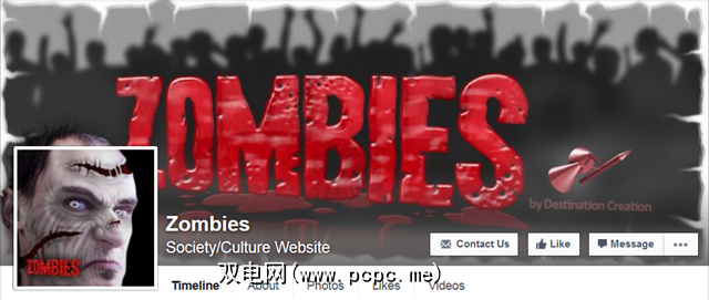 Zombies 的另一个恐怖主题页面很好地融合了图像。您会看到僵尸的头突然出现在背景封面照片中,看起来很酷。 “ Z"虽然略有保留,但仍然是一个灵感十足的组合。