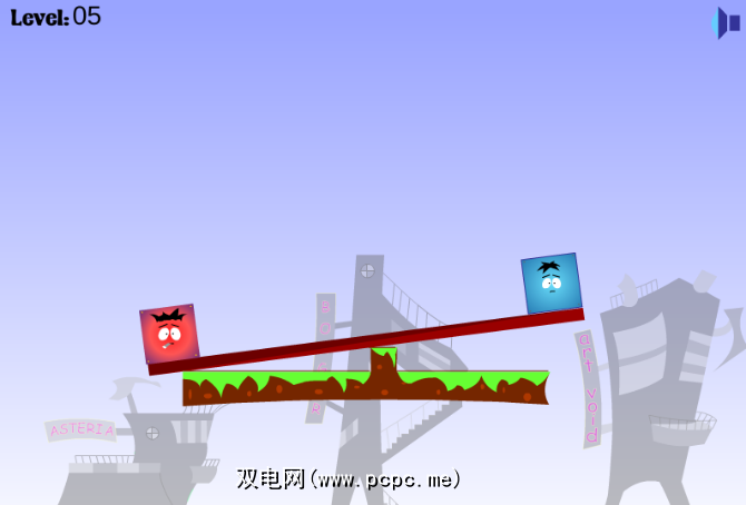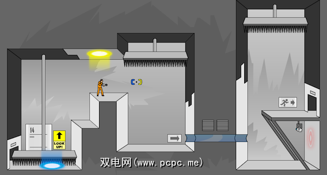 大多数像Mario这样的平台游戏都可以让您移动角色。旋转使您也可以移动整个屏幕。按E键,游戏中的整个“世界"将顺时针旋转90度,从而改变重力。按Q,它将逆时针旋转90度。使用此功能,您需要将您的角色带到每个级别的出口。提防尖峰和其他障碍,这比看起来要棘手。