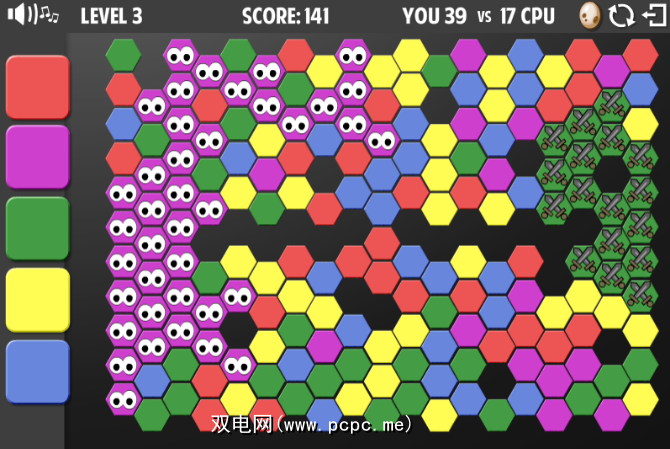是时候成为反派并帮助病毒传播了。这是在由微小的六角形细胞组成的大网格中设置颜色的游戏。选择一种颜色,您的病毒就会变成该颜色。它还会传播到它可以触摸的任何类似颜色的单元格。不断改变颜色以感染更多的细胞。但是要小心,动作有限!您有15个级别需要通过,最后五个级别非常具有挑战性。