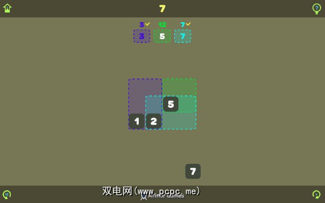 求和块是比Threes更简单的数学游戏!但是还是很有趣的系统会为您提供一些带有数字的方块。该区域有几个相互重叠的矩形。每个矩形都有其自己的值。将编号的块放置在矩形中,以使这些块累加起来等于该值。当您将一个块放置在两个矩形的重叠部分中时,两个块都算在内。