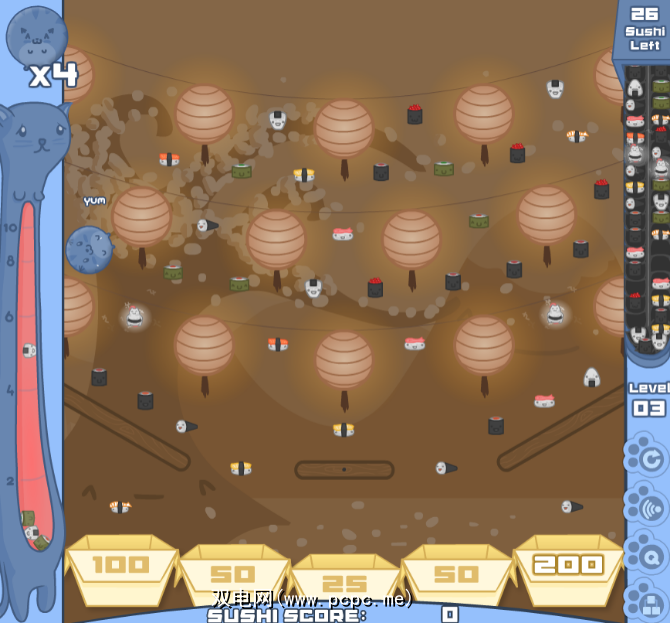 Sushi Cat是一款Pachinko风格的游戏,您可以在屏幕顶部放下毛茸茸的肥猫,希望在吃下去的时候尽可能多地吃寿司。当然,前进的道路上充满了会反弹寿司猫的障碍,因此您需要明智地选择下降点。
