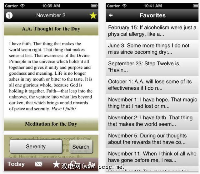 如果您不喜欢参加12步会议,您还可以从应用程序的日常冥想中受益。