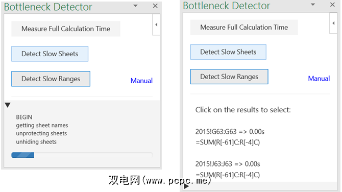 对于那些创建,编辑和维护工作簿和电子表格的用户而言拥有大量数据,瓶颈检测器确实可以提供帮助。该工具将向您显示使您的工作簿变慢的原因。安装插件后,将在功能区中的主页选项卡上放置一个按钮,只需单击即可将其打开。