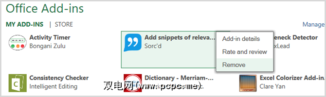 如果要删除已安装的加载项,请从插入标签中选择我的加载项按钮。然后,单击外接程序右上角的更多(三点)选项。在确认弹出窗口中选择删除,然后再次删除。