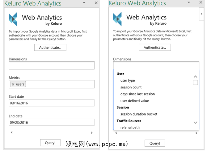 您可以从各种维度和指标中进行选择,以获取准确的数据想要。这些选项包括用户,会话,流量来源,Adwords,页面跟踪,受众等等,每个选项还具有一个子类别。插入网站的Google Analytics(分析)没有比使用Keluro更为简单的方法。